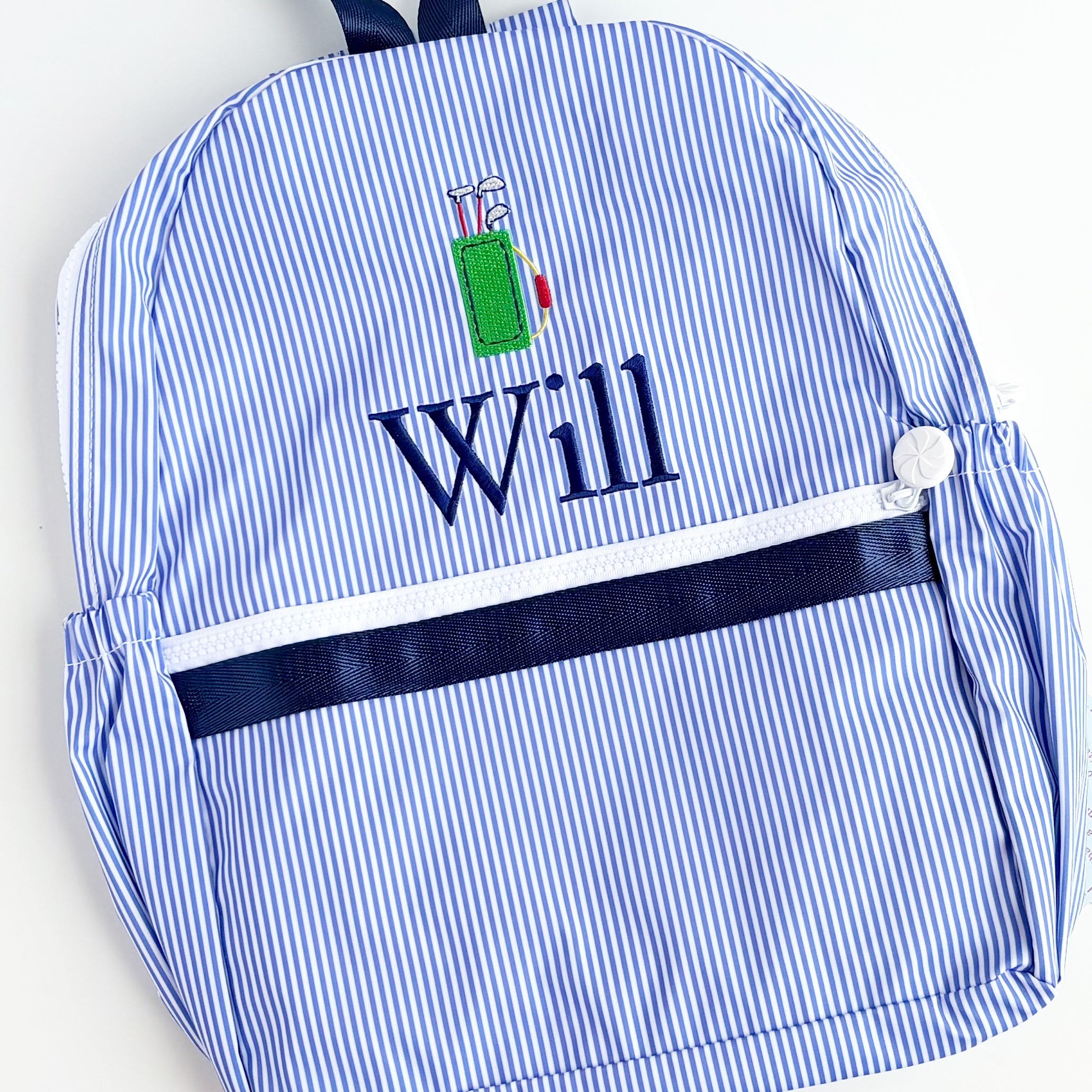 Available in Pink, Navy, Lilac, and Baby blue Preppy Stripe, as well as Pink and Baby blue Bungalow, a "cane" design.